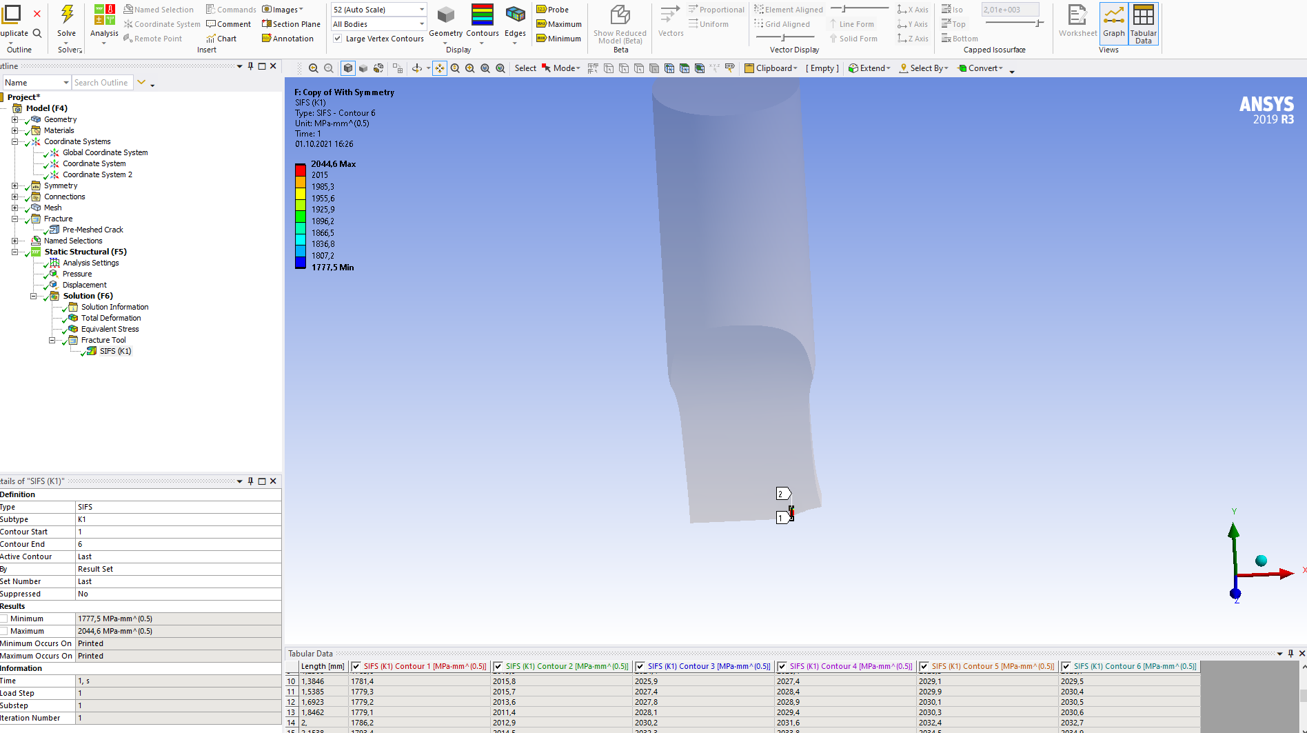 SIF(K1)_3D = 2030 MPa*mm^0.5