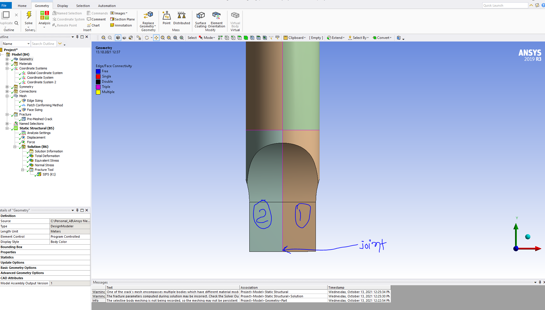 I now finding the SIF for 3D model joined with two different material as shown in below image.