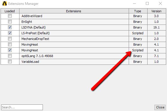 3. Once you re-launch Workbench, select the Scripted MovingHeat extension instead of the Binary one.