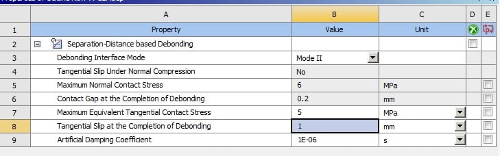May 9, 2023 at 1:57 pmcéleste marechal SubscriberDear Jackhero, I also try to simulate a pull-out so i am using debonding contact with the CZM law. I can not get the graph of the load in function of the sliding because of a problem of convergence and "The deformation is large compared to the model bounding box. ". I am simulating a debonding contact of an optical fiber inserted in matrix epoxy by putting a displacement at the end of the fiber. Do you know what I can do to complet my calculation ? I can send you picture if you need some. Best regards