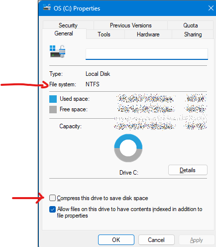 - please check drive properties for C: What is the file system type? hopefully it is NTFS. Is disk compression turned on ? it is off by default.