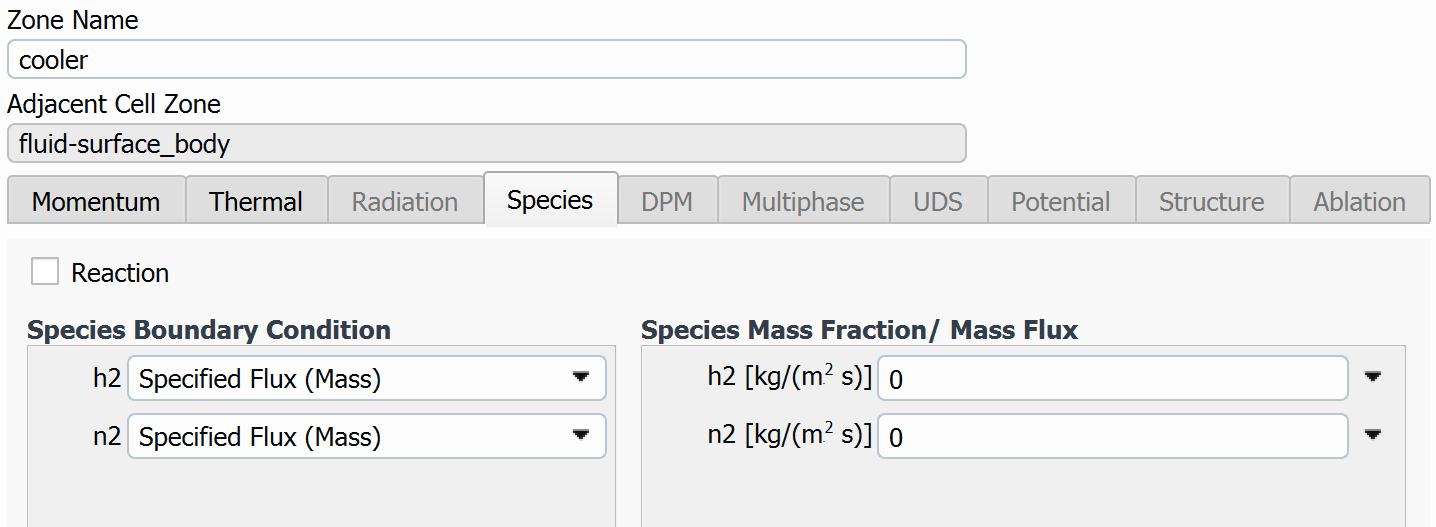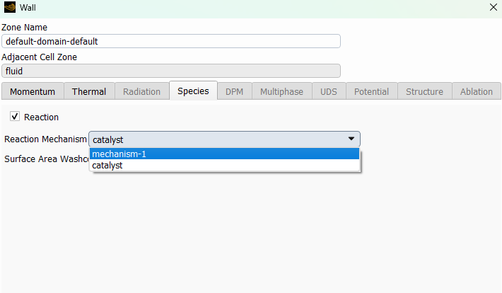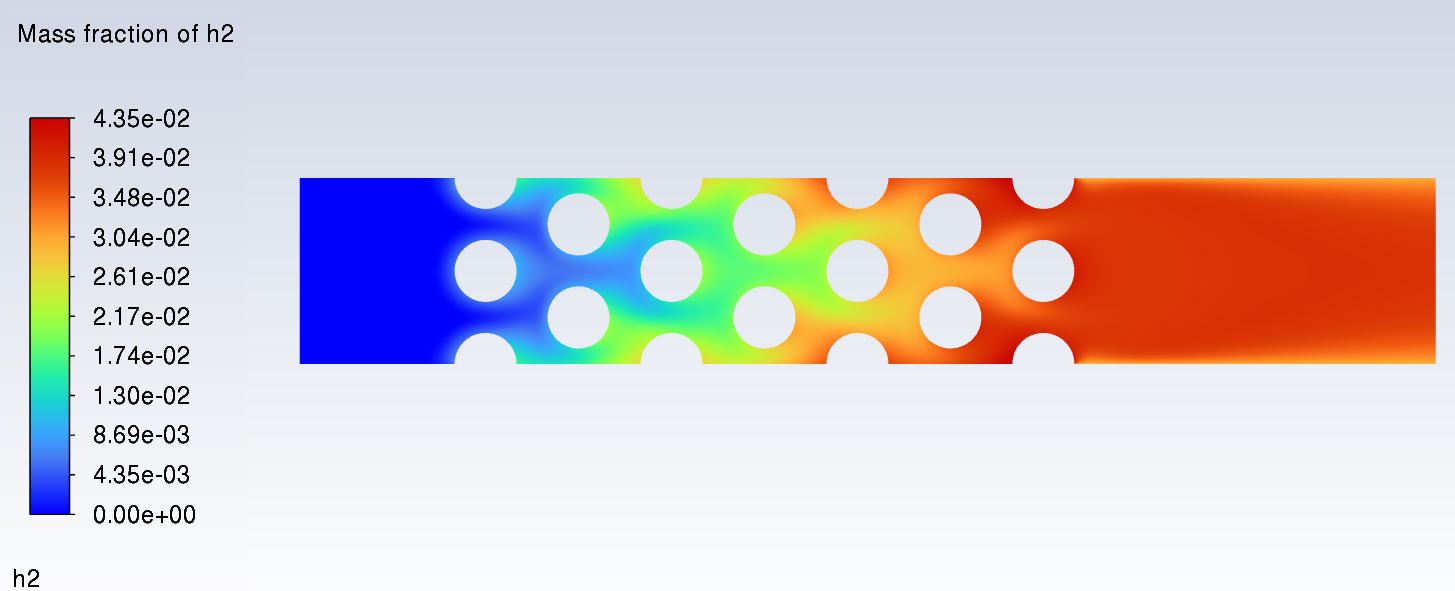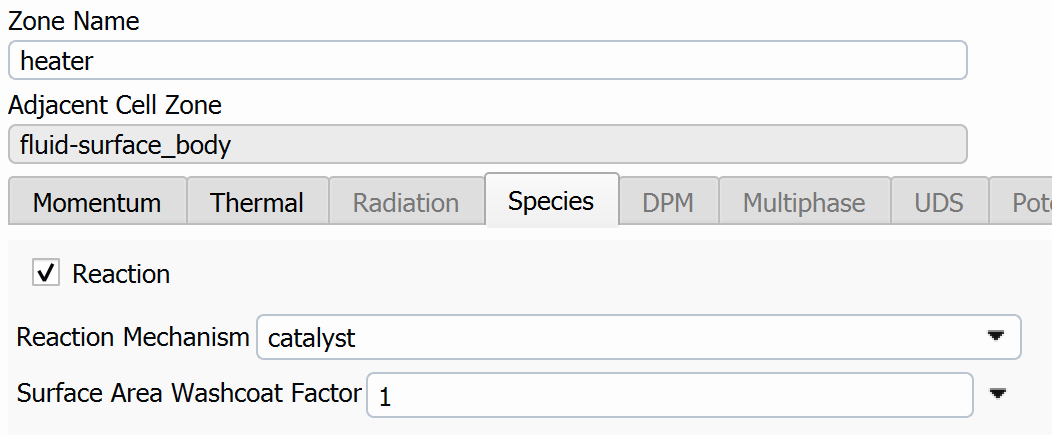 Ansys EmployeeIn addition to Judy's suggestions, if the same setup works for a turbulent case but not the small-channel laminar one, it suggests the possibility of a diffusion-limited process. I wouldn't expect the impact to be quite that large, but you could try selecting the "Full Multicomponent Diffusion" option in the species dialog to see what effect it has, if any.