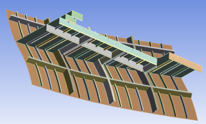 Hello Peter, thank you for your reply. This is the section the ship, this geometry is between two watertight bulkheads (bulkheads are not included) and two decks (decks not included). Because of symmetry we did just one side.