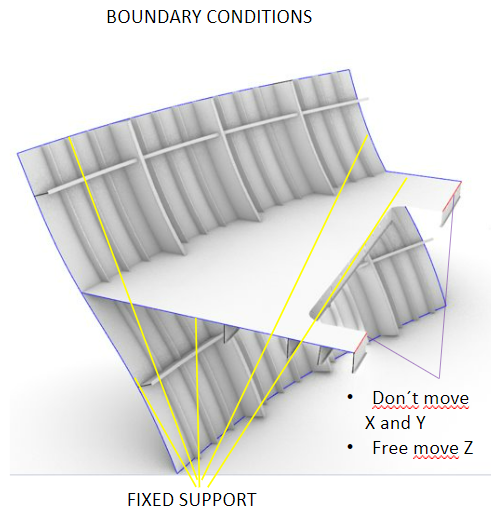 4. These are the boundary conditions for the geometry, we are going to consider to expand this geometry since applying fixed supports in the borders near the region of interest, will affect the asnwer. Do you have any recommendation for boundary conditions?