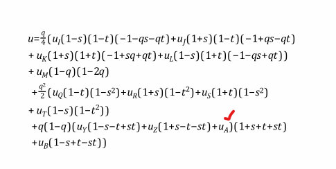 SubscriberI am trying to understand the 13-Node Pyramid Element as shown in Figure 11.13 and the accomaping shape function eqn 11–195 from the documentation. The problem I have are in the last two lines of the equation for u, as there the parenthesis given do not match. The last closing parenthesis has no opening counter part. I would like to know where that should be placed.