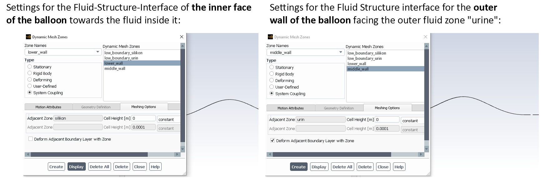 I am also planning on using [B]contact detection[/B] to model the closure of the balloon against the wall. Therefore I have set a contact offset in mechanical (and also checked that it works) and put the same value into the "contact detection" setting in Fluent.