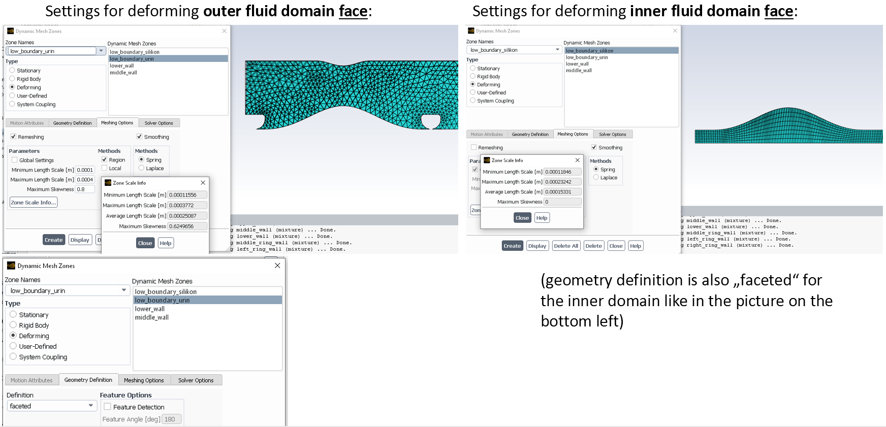 The faces adjacent to the Fluid-Structure-Interface were set as deforming: