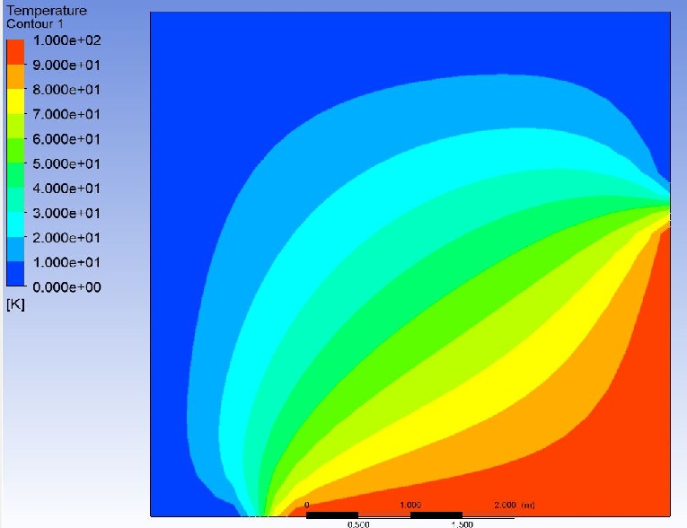 Moreover, I simulated the two cases that I mentioned ( treating the problem as a steady 2D heat transfer or solving as inviscid flow with wall boundary conditions and two velocity inlets):