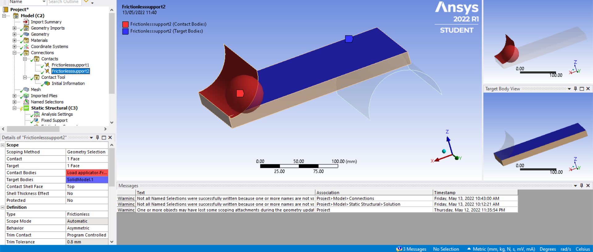 so under the details of the contacts, change the settingContact shell facetoBottomon both contacts, as it is set to top now and which is not correct.