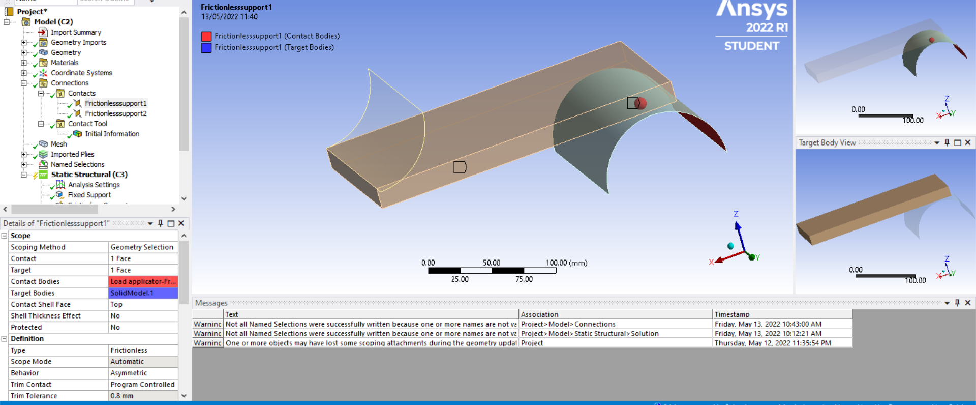 Finally in the contact settings set Interface treatment/Offset to adjust to touch: