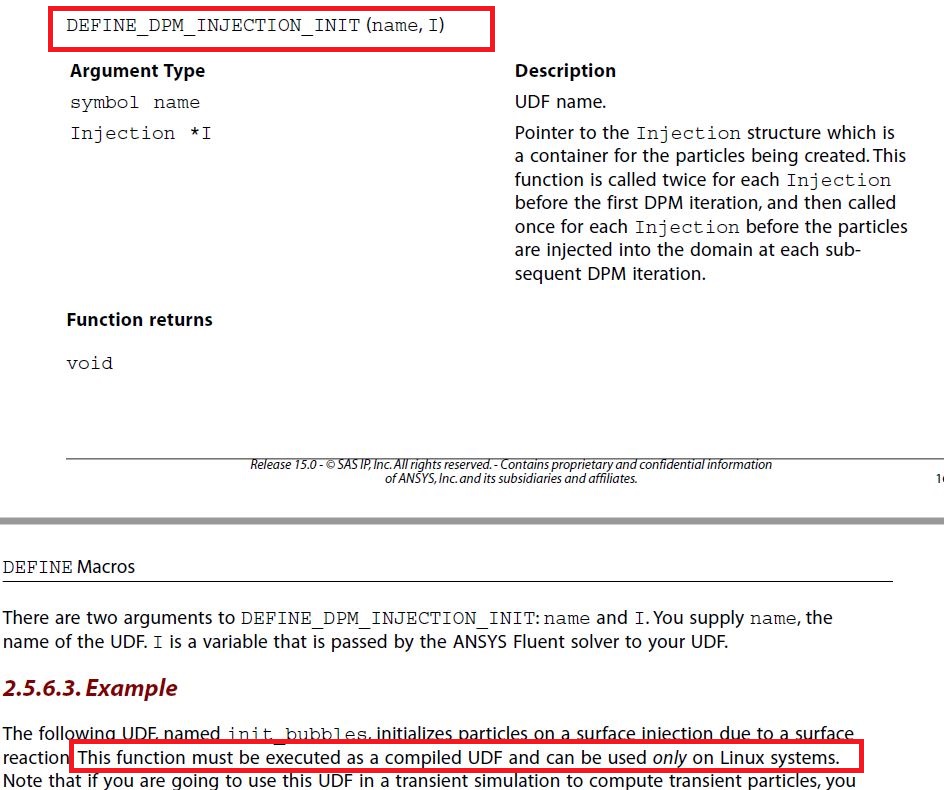 Thank you YasserSelima ! I will use this code tomorrow. But will you check the attached image. In the ansys udf manual I see that DEFINE_DPM_INJECTION_INIT can be only used with Linux system. But I am working on Windows machine. Can I still use DEFINE_DPM_INJECTION_INIT on windows system?nn