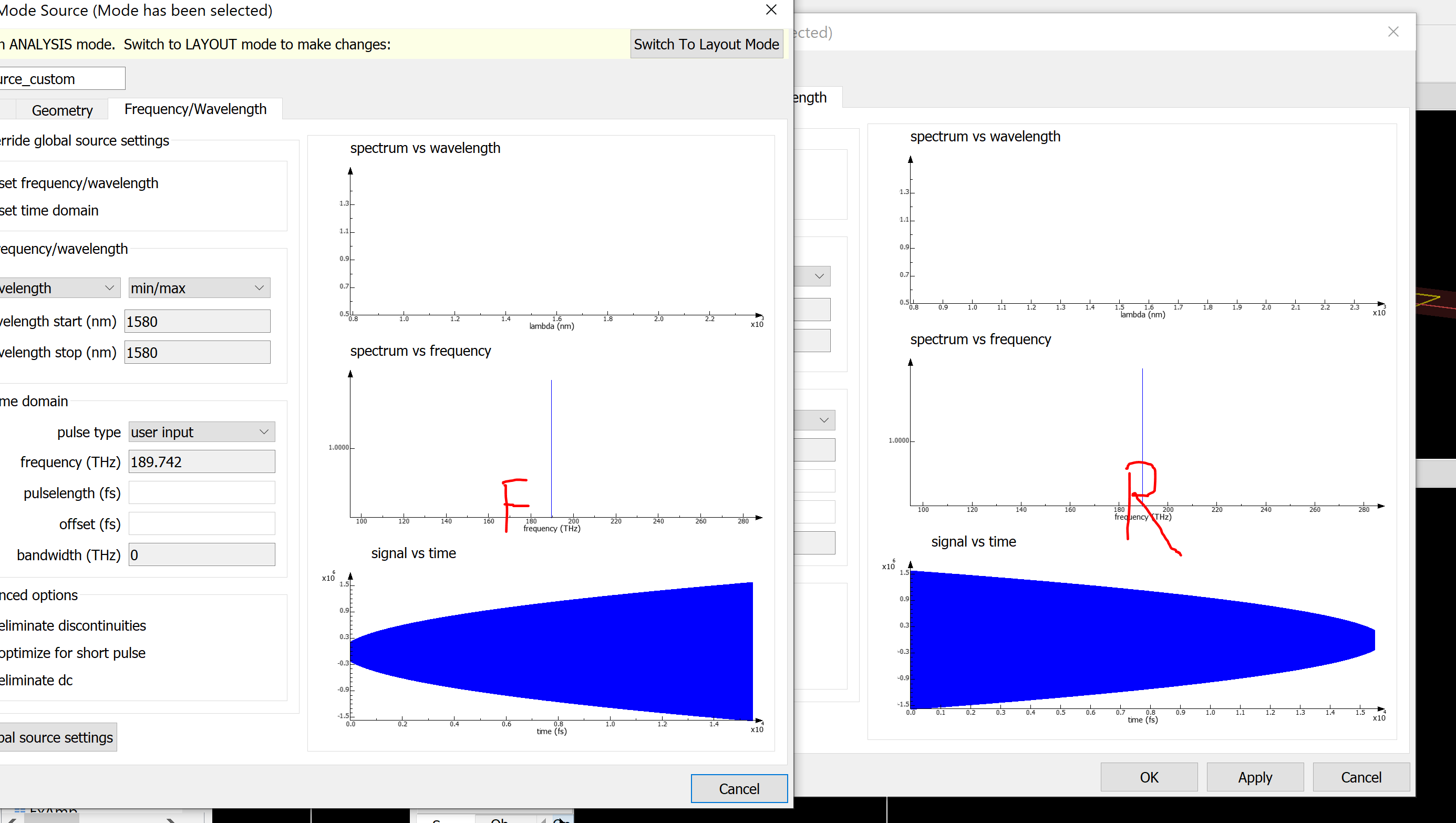 Subscriber老师好,我在对网站提供的双稳态例子仿真的过程中想要得到在输入的Source Intensity不变的情况下,这个结构的Transmission随着波长变化的图像。我改变了输入信号强度随时间变化的脚本使其输入强度稳定在固定的一个值,但是通过监视器T得到的图像明显是不正确的,所以想问问老师应该怎么做才能得到想要的传输图像。