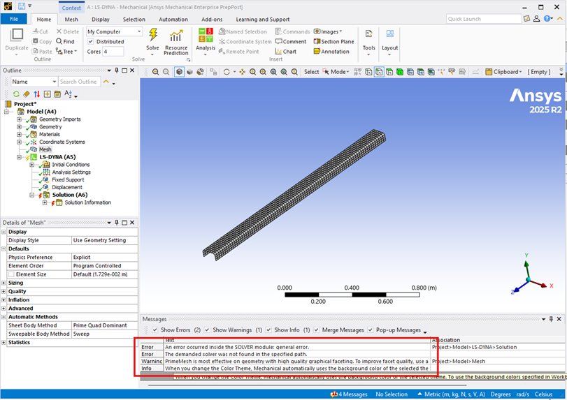 SubscriberI find a lot of posts about this error using the free student version, but here we have the academic/research licences and we still experience this error when trying to solve a dummy problem with LS-Dyna:
