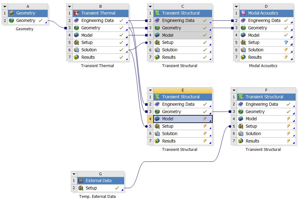 I have opened your project, which I see has 2D Plane Stress Transient Thermal and Transient Structural analysis linked together in B and C, E and F.