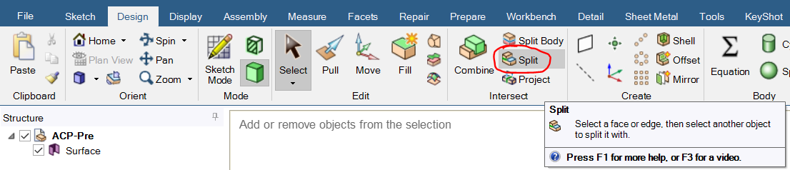 In ACP, you will only see the top and bottom surfaces used to create the composite layup: