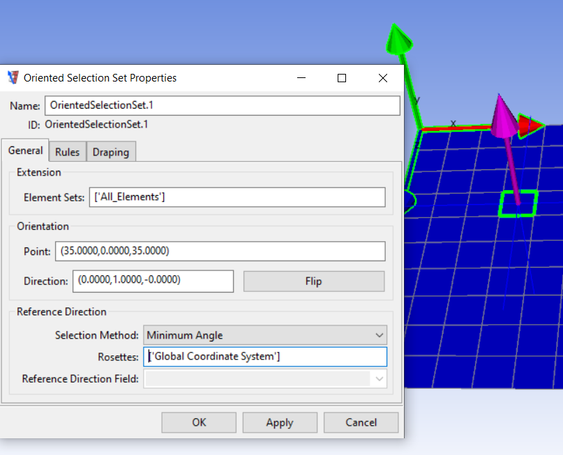On the General tab, you select all elements as element set and define the other inputs (point, direction, rosette) as usual. Then, you move to the Rules tab and select the appropriate selection rule for the oriented selection set: