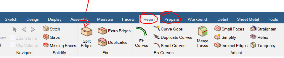 Note, that you there is no need to import the model into DesignModeler because all the geometry work can be done in SpaceClaim. Make sure the geometry is good in SpaceClaim (no small edges, split edges, etc.). Use the "Repair" and "Prepare" tabs in SpaceClaim: