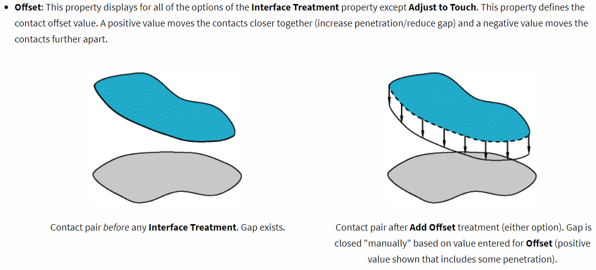 To clarify the "moves every node" statement, that refers to the contact element nodes, which are initially created coincident with the structural nodes on the body face. The Offset section of the contact definition allows you to move the contact element nodes into the body or outward from the body. Adjust to Touch just automates the setting the value after measuring the minimum gap.