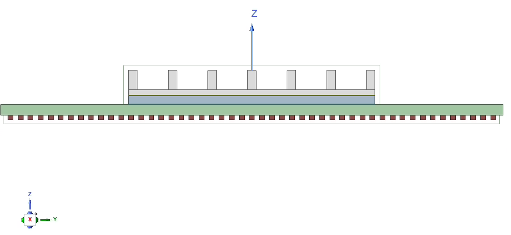 - Below the Underfill&Solder, there is a Substrate (X = 50mm, Y = 50mm, Z = 1mm)