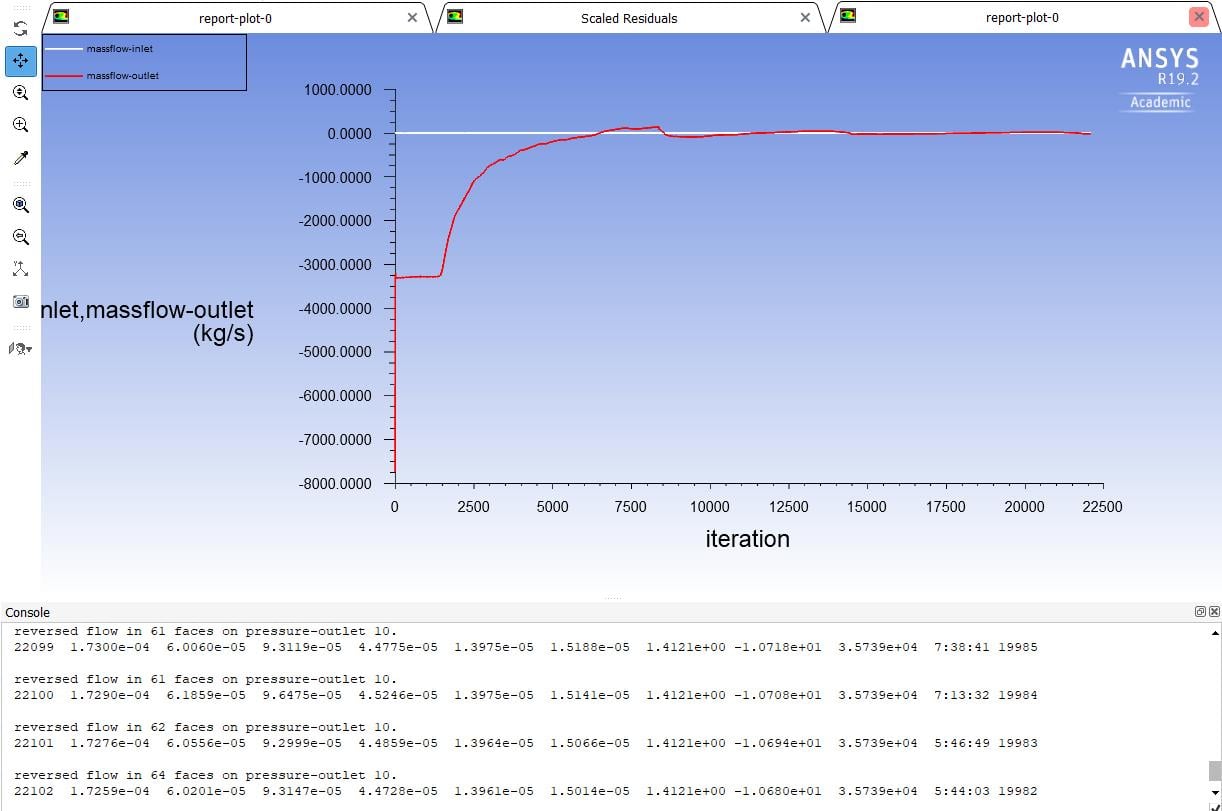 It seems like the massflow is also converging, but there is still a Factor of 10 between the massflwow at the inlet and at the outlet.