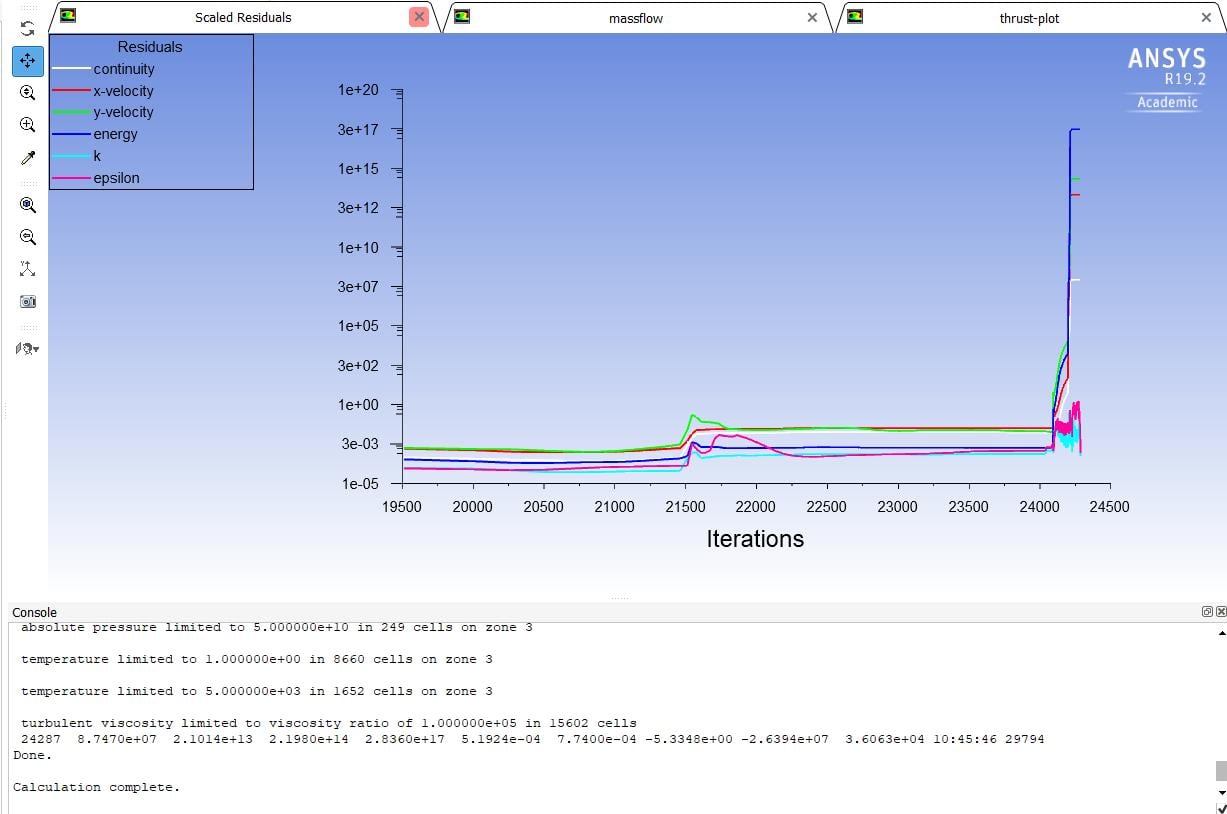 For my thesis I have to simulate the flow in an aerospike nozzle. After some initial problems my simulation converges, in addition to the residuals I also looked at the mass flow at the inlet and outlet, but this differs considerably. The mass flow at the outlet is by a factor of 10 larger than at the inlet, additionally I often get the message during the simulation that reversed flow is present. The force on the nozzle wall is a hundred times greater then calculated. Does anybody have an idea what this could be due to?