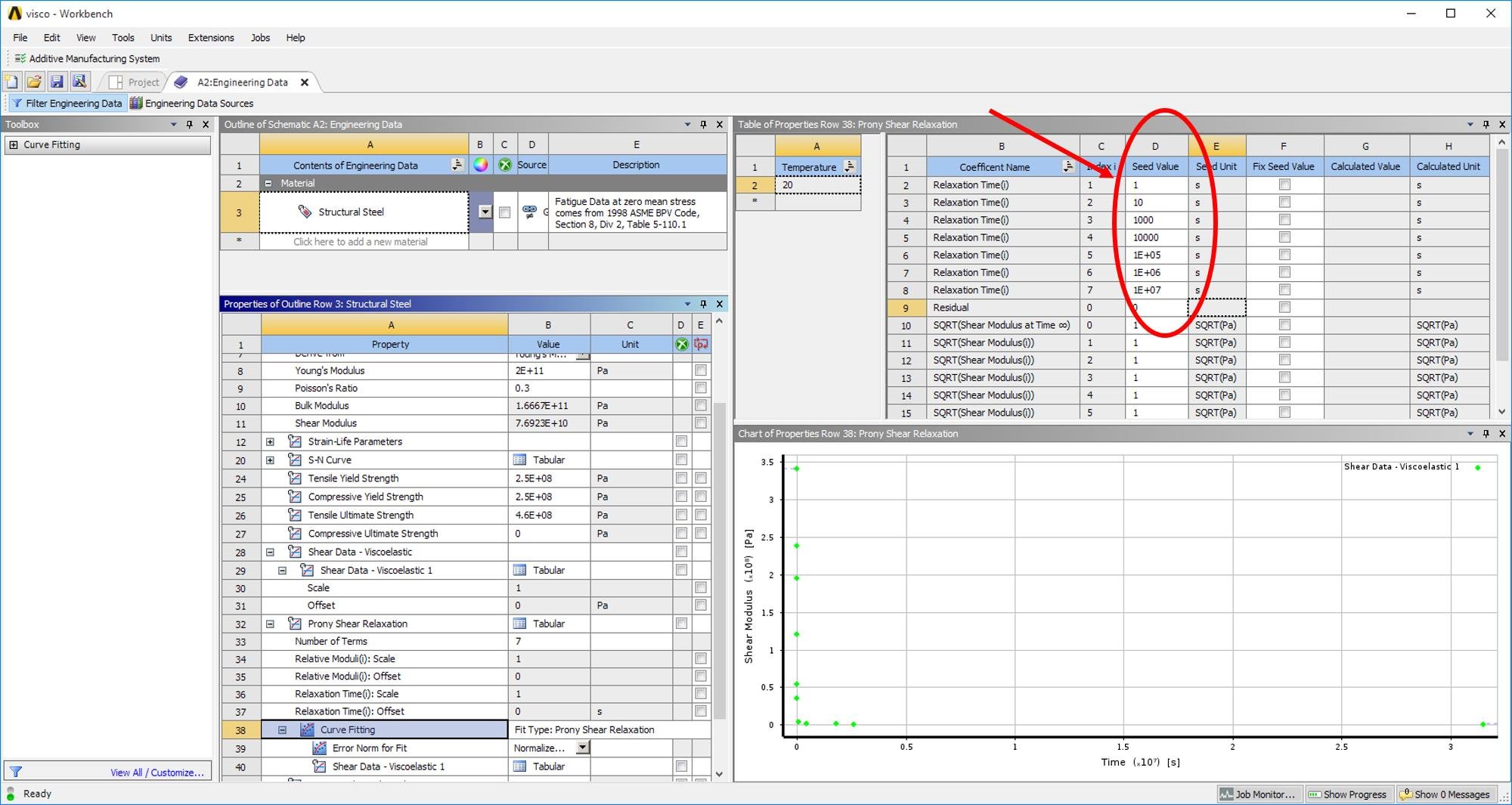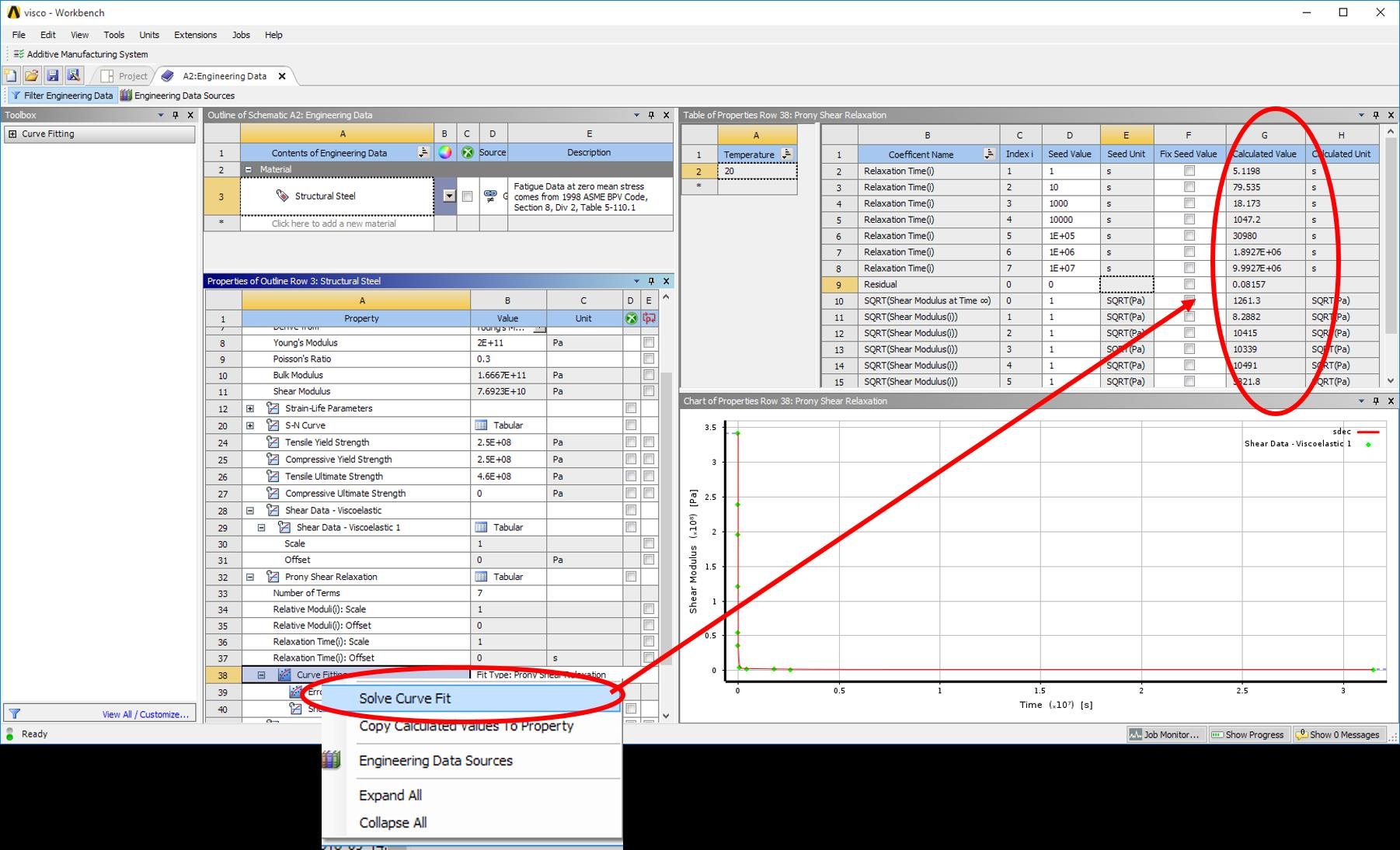What do you mean to curve fit separately? I input the relaxation data at 'Shear Data - Viscoelastic' for 20 and 30°C [Fig]. When I do curve fitting, Prony coefficients are generated for both temperatures automatically. How do you do them separately? And these coefficients will be the same even if I solve the curve fit for 20 and 30°C separately in separate Engineering Data standalone systems.
