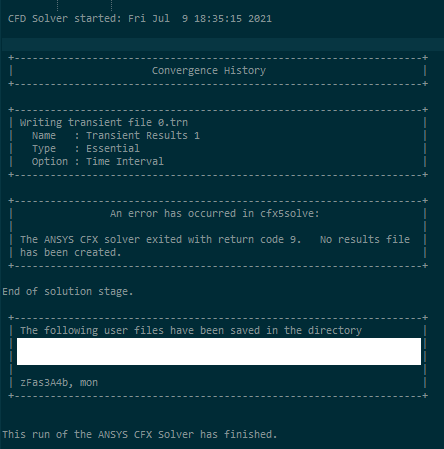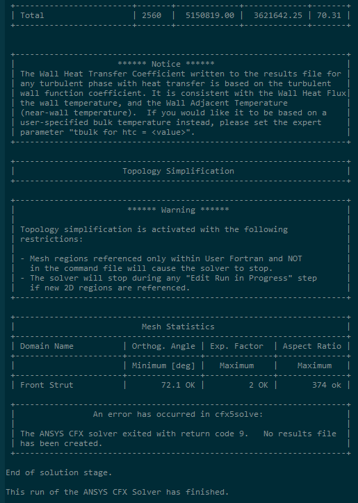 Viewing 5 reply threads- The topic ‘An error has occurred in cfx5solve: The ANSYS CFX solver exited with return code 9.’ is closed to new replies.