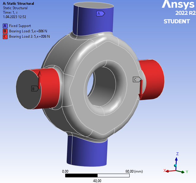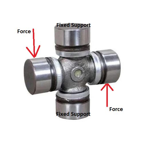 I'm trying a static analysis a spider body in universal joint. Spider has got a bearings each end.