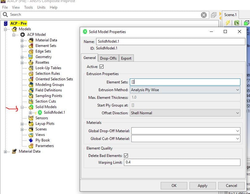 SubscriberI have created this model (in the picture), in solidworks. I want to layup the surfaces with unidirectional e-glass with epoxy resin attached to the solid leaves of leaf spring (SUP 9 spring steel material) in the model. I converted the model to .step format and imported it ANSYS ACP. But, after importing, all the geometry acts as surfaces. I still want to keep the main leaf and the third leaf as solid components (SUP 9 spring steel material) and layup the second and fourth leaf using unidirectional e-glass with epoxy resin in ACP. How can i do it?