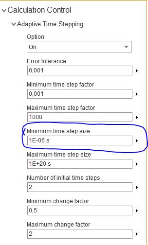 actually i´m using transient simulation, and i have already tried to reduce the time step to 1e-6 second. But this did not change anything.