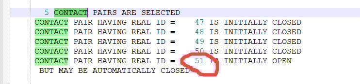 SubscriberHi ,reading this old discussion, can you please tell to me how to actually find those contact in ansys by the ID number?nIs there any search tool in ansys to do that?nBy myself in the model I have defined only two bonded contacts, But when I did the contact pairs check ansys has found 5 contacts one of them is open but may be closed. Can you please explain how to find this last contact using the real ID number 51 and what it means that it may be closed?nThank you!n