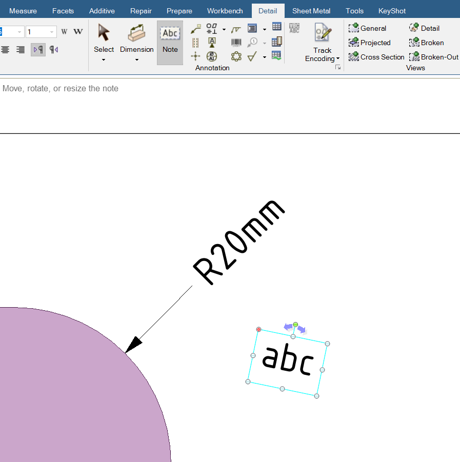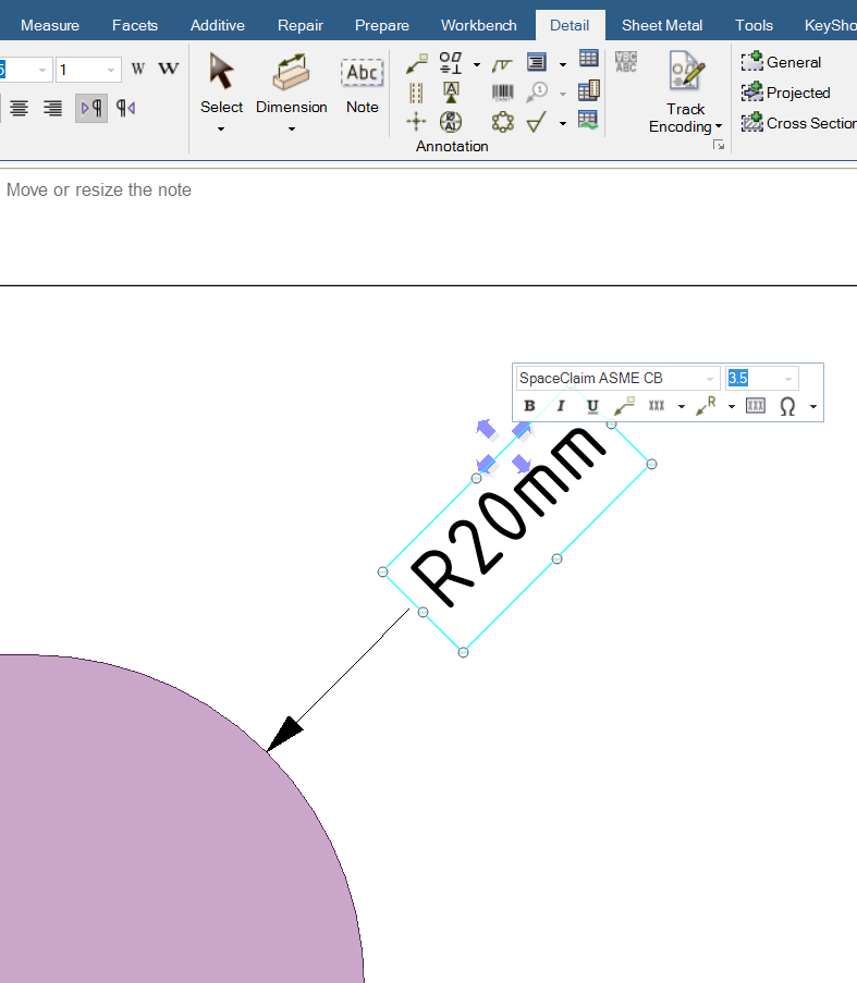 According to ansyshelp.ansys.com, it says "Select the dimension annotation to move, size, or rotate it." However, with reference to the screenshots, it was not possible to rotate the dimension annotation, though it was possible to rotate a note.