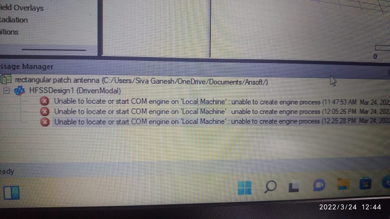 [error] Unable to locate or start COM engine on 'Local Machine' : unable to create engine process (11:47:53 AM Mar 24, 2022)