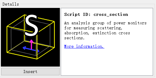 得到的结果可以大于1!该结果并不违反物理原理,这是因为我们是在散射场,所以不能在散射区计算透射率反射率。相应的截面积只需要将上述结果乘以 sourcepower(f)/sourceintensity(f) 就可以得到。而吸收截面积可以根据1-R-T计算得到,不需要另外的分析组。