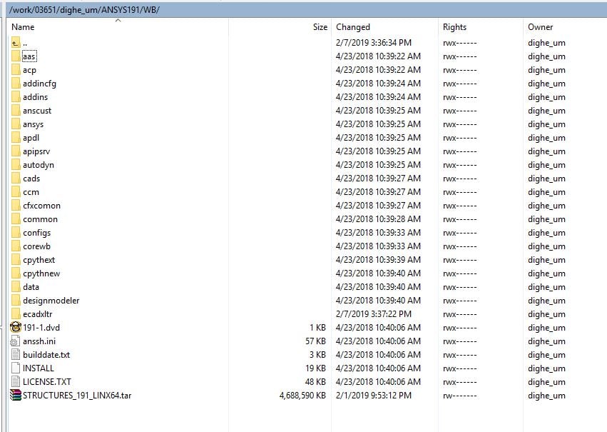 Extraction: /work/03651/dighe_um/ANSYS191/mw/LINX64.TGZ ...