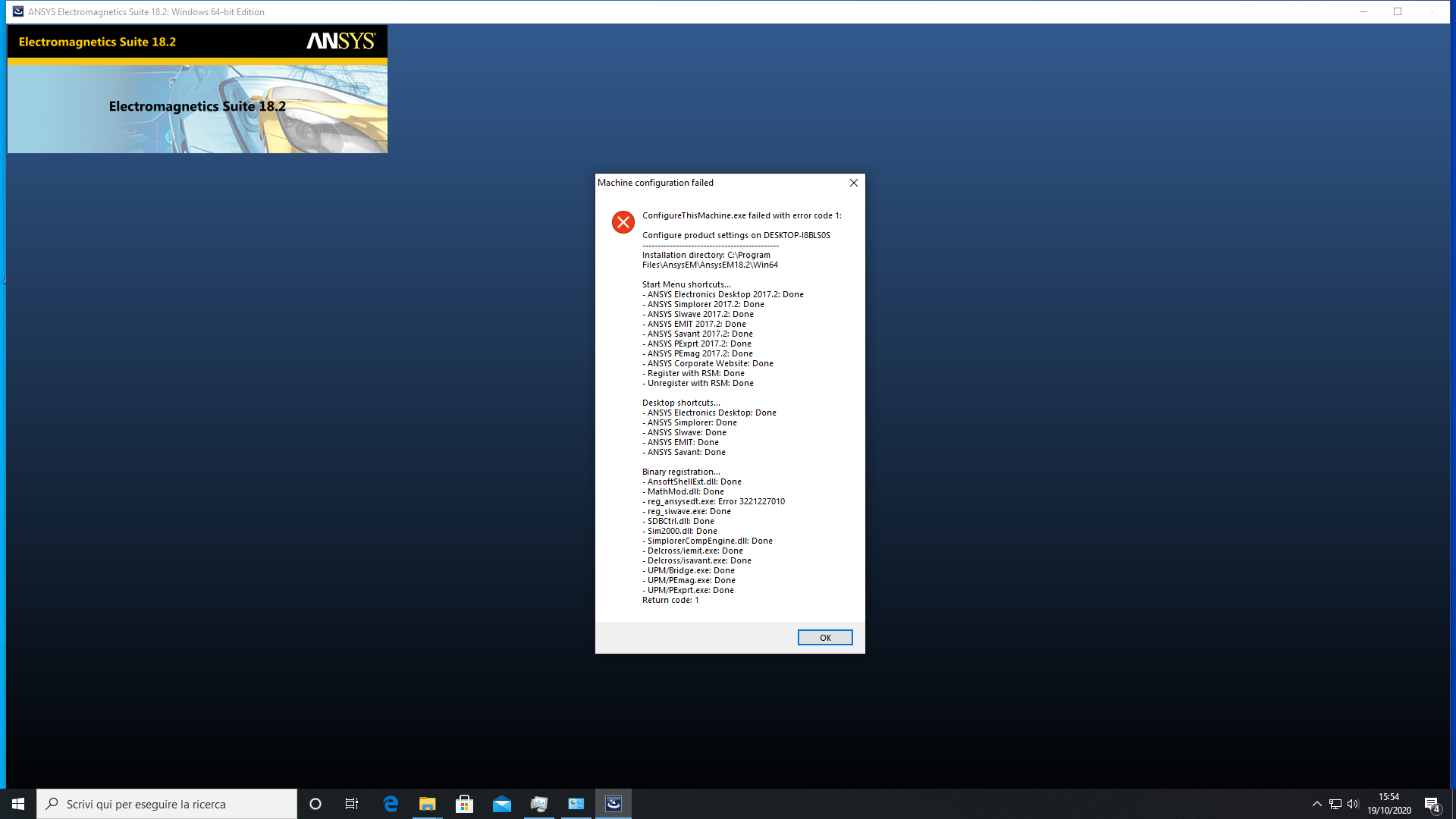 SubscriberHi, I'm Pierpaolo from Sicilsat Communications, I'm contacting you because I have on my workstation the same issue with error 3221227010 on reg_ansysedt.exe, running ConfigureThisMachine.exe. I have this problem running Ansys Electronics Desktop ( Ansys 2017.2).nI follow the instructions creating a new environment variable but it doesn't work. nCan you please help me ?.Thanks in advancen