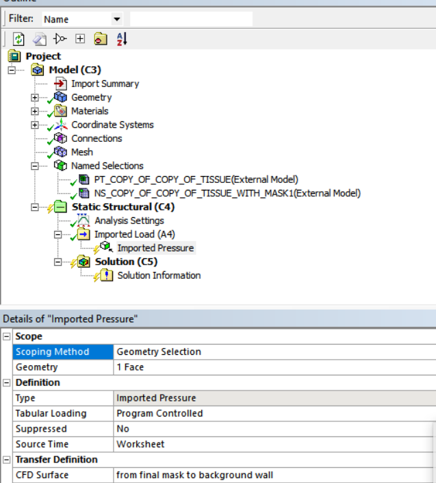 Ansys EmployeeHave you import the load using external data( https://www.youtube.com/watch?v=4D8fKjJ17lY)? Looks like you have directly linked fluent solution to static structural. You should ideally get that option if you use external data.