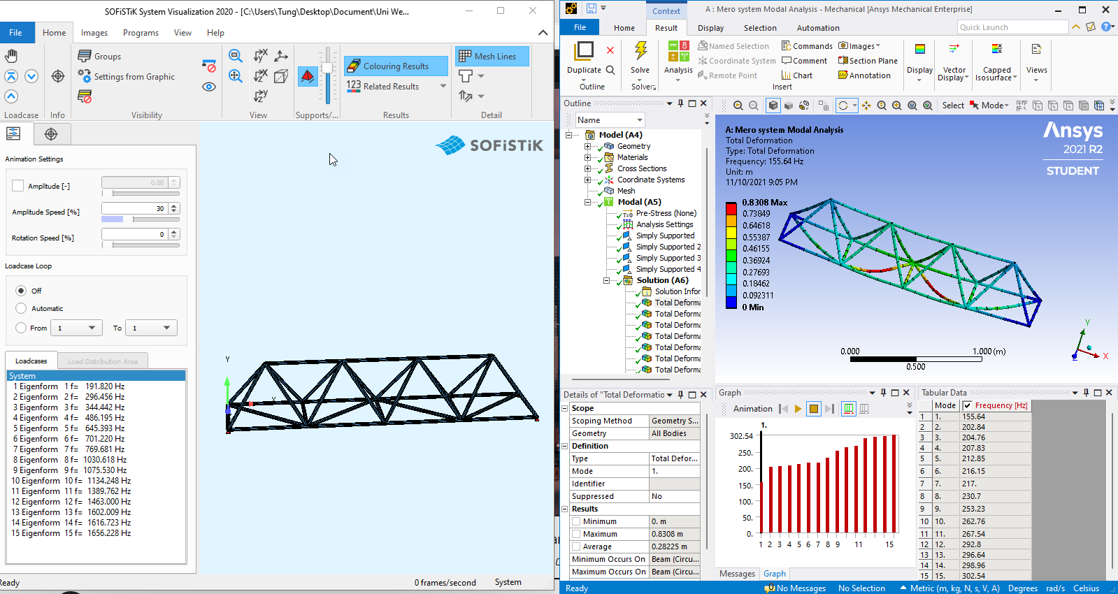 SubscriberHi everyone, i have been working on a space truss model (Mero space truss system) and tried to perform modal analysis. However the first frequency also the whole frequency range from Ansys doesn't match with my other FE software models (Sofistik and SAP2000): While in sofistik my first frequency is 191.82 Hz and for the first 15 modes it ranges up to 1656 Hz, in Ansys my first frequency is only 155.64 Hz and only ranges up to 302Hz for the first 15 modes.
