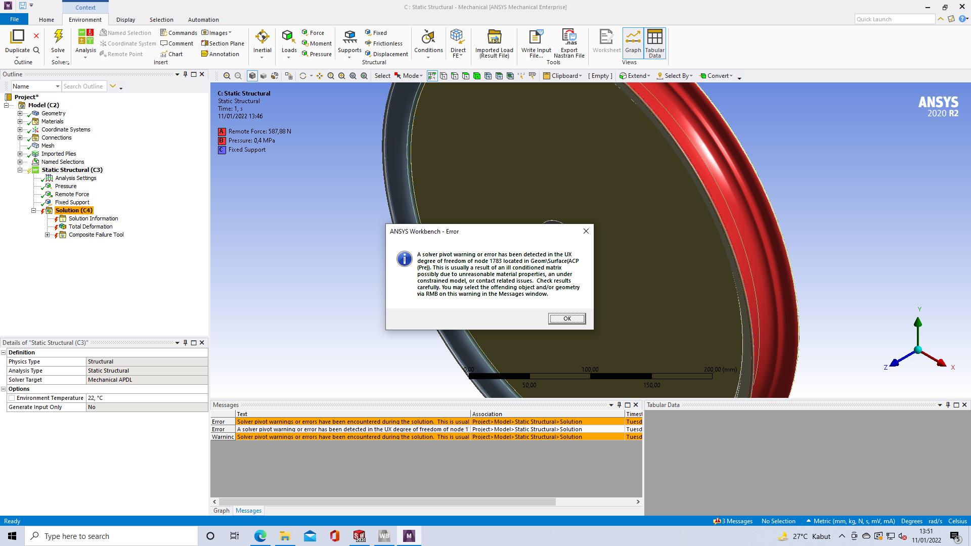I'm working on ANSYS ACP - Static Simulation Carbon Fiber Wheel Rim but a message appear like this (Image 1):