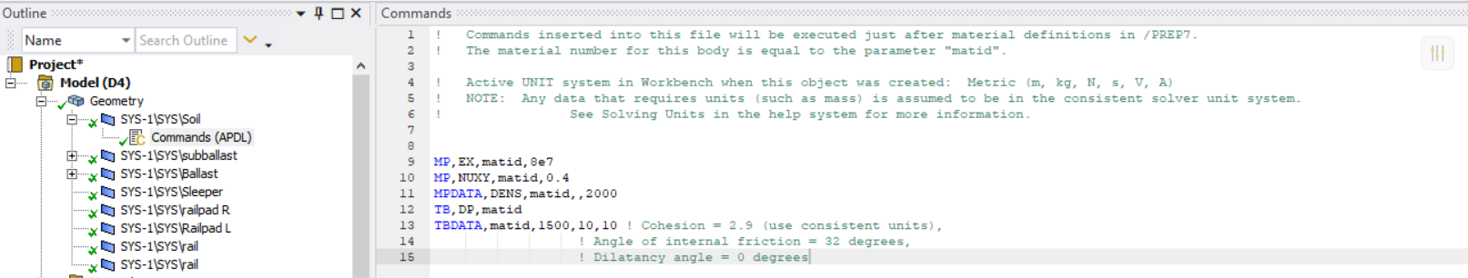 and I find this script in ansys Guid on soil models. Please give confirmations i am using it in right way or not ?