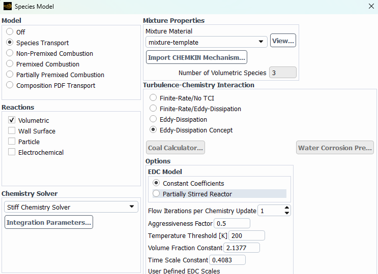 I am modeling the Sydney Needle Spray Burner in Fluent with the EDC species transport model using a simplified ethanol mechanism, which could use in Chemkin to simulate 0D/1D flame.