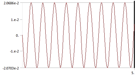Looking at the Displacement function in the Transient Structural, the amplitude is 0.0207 mm but there are only 9.5 cycles in 5 seconds. That is 1.9 Hz.