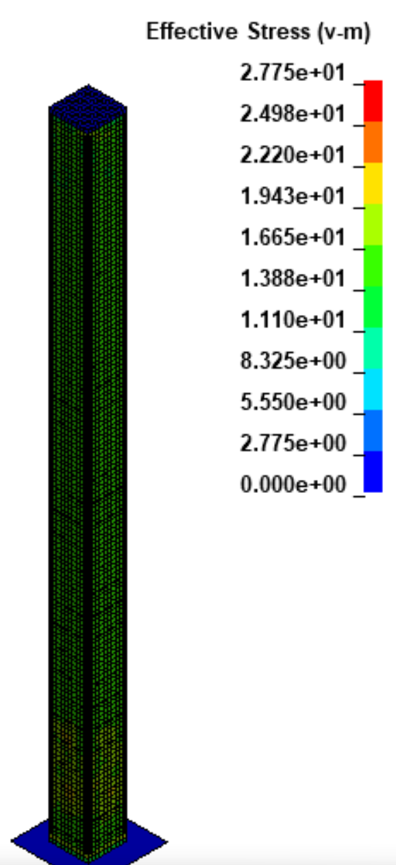 SubscriberHello everyone, I am modeling a reinforced concrete column under axial load applied as a rigid body load. I modeled the concrete using solid elements elform of 3 and hourglass type 3, for rebars I am using beam element. Concrete material is MAT072R3 and steel is MAT024. For bond between concrete and steel first I used Lagrange in solid but it was affecting the stress distribution in concrete then I switched to beam in solid which seems no issues in concrete stresses. However, I am not able to see the stress in rebar in either cases whether using Lagrange in solid or beam in solid. It seems the stress or axial force is not getting transferred to rebar because when running the simulation there is no movement in rebar. I did activate the extent binary keword by putting the value of BEAMIP to 1. I would appreciate your help to solve this issue I am facing. Please see attached photos for clarity.
