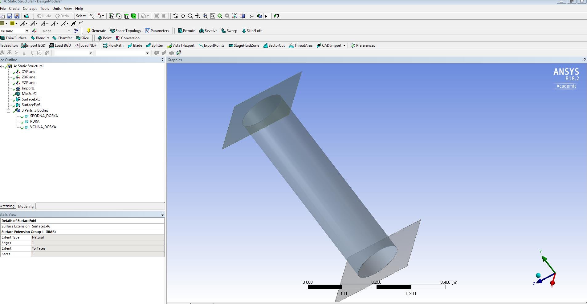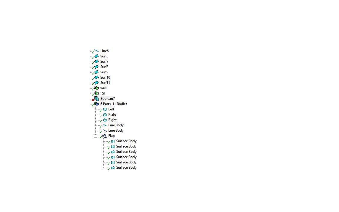 3. Then I use concept-surfaces from edges, as a result I got 6 surface bodies, now I make a single part by the method you described above as by selecting all and then by right clicking Form new part. But I need to subtract this part(or 6 surface bodies) from the fluid domain and when I go for boolean operation#: