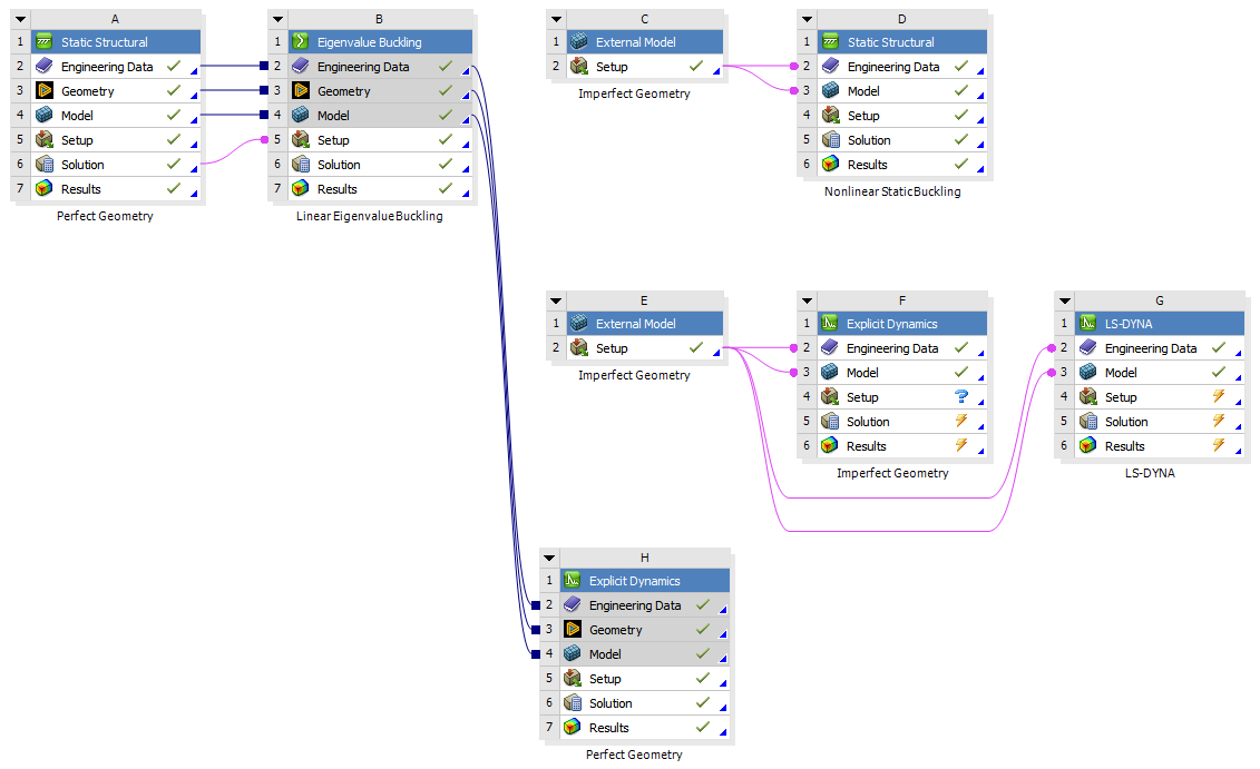 SubscriberI'm using a linear Eigenvalue Buckling analysis to create imperfect geometry for a Nonlinear Static Structural analysis by using UPGEOM to use a fraction of mode shape 1 and these are working as expected. Here is a video of that model: https://youtu.be/Iqqu92KL5Ko  An Explicit Dynamics (H) model using perfect geometry also works as expected. Â