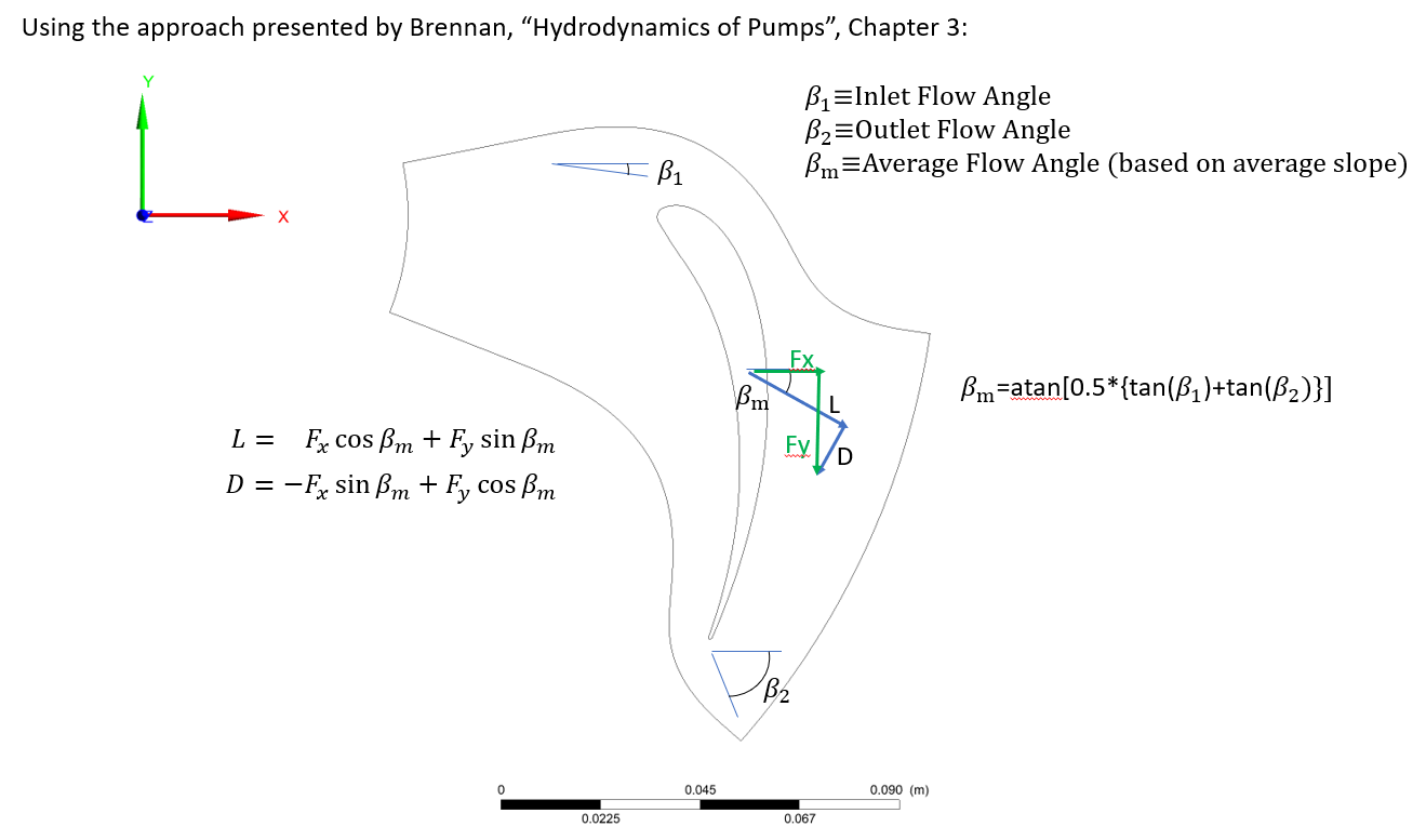 Ansys EmployeeI believe you can calculate lift and drag using an approach outlined in Brennan's text, "Hydrodynamics of Pumps", Chapter 3 (you can access this using this link: https://authors.library.caltech.edu/25019/1/chap3.htm)
