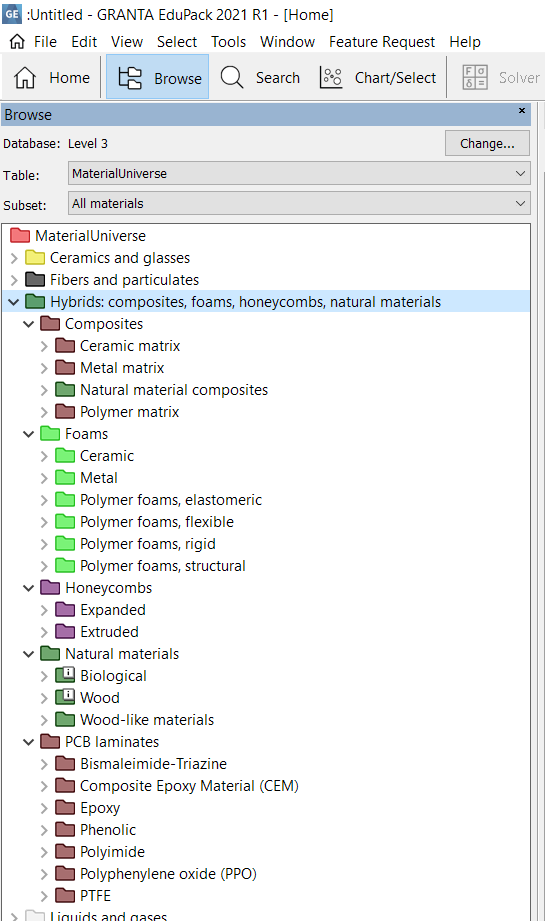 If you want to learn more in general about hybrid materials, the Ansys Grata EduPack is a very good pedagogic software. Below screeshots of the material database with hybrids highlighted and of the Synthesizer tool, which helps to design manually some composites and architectured materials and to estimate their properties, in order to compare to reference materials, like you can see in the last Ashby graphic. https://www.ansys.com/products/materials/granta-edupack