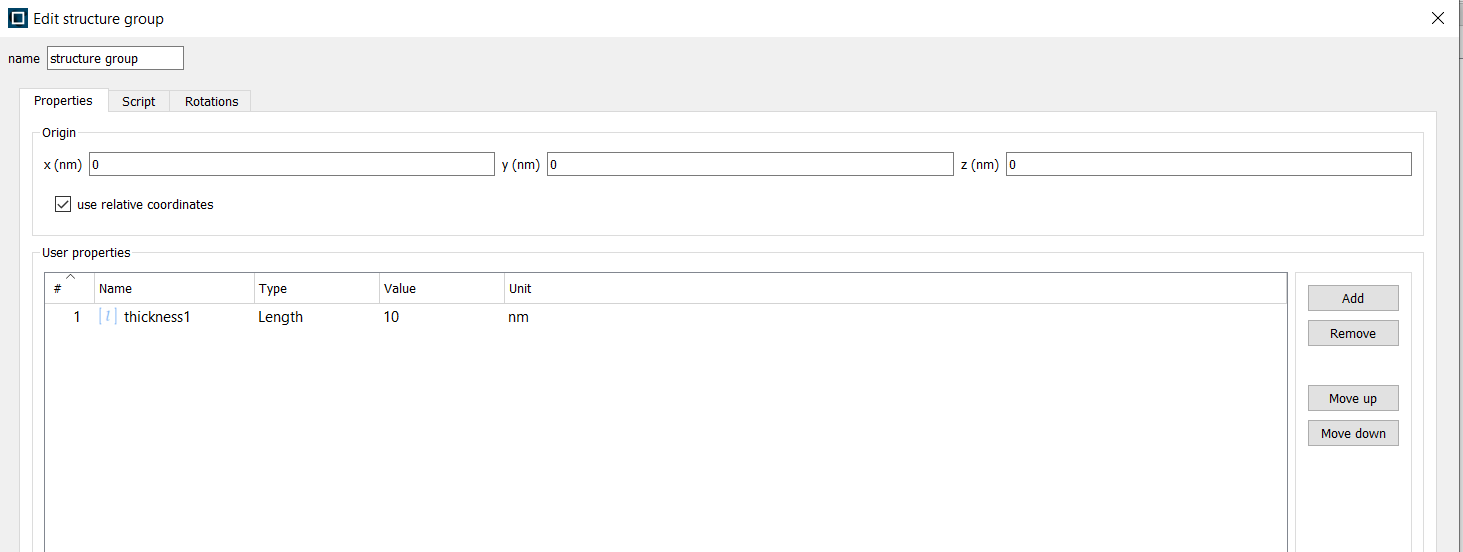 "R_" is the monitor and I'm trying to extract value of "T". To do that I created a single layer structure inside of structure group and added a parameter which is "thickness1".