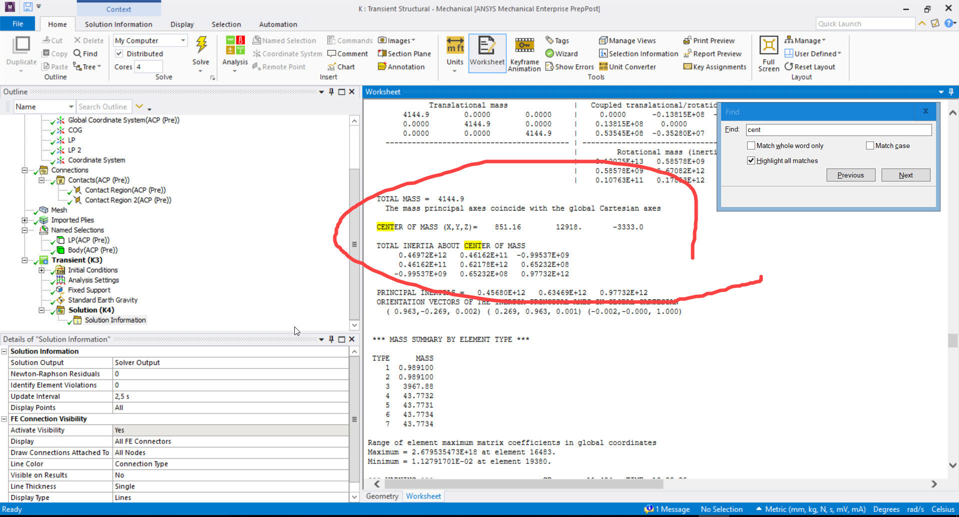Hi, please help me to find the center of gravity of the model, I tried to find it but the final point lies far away from the model, I can't understand the reason, I applied smile gravity to it. Thank you