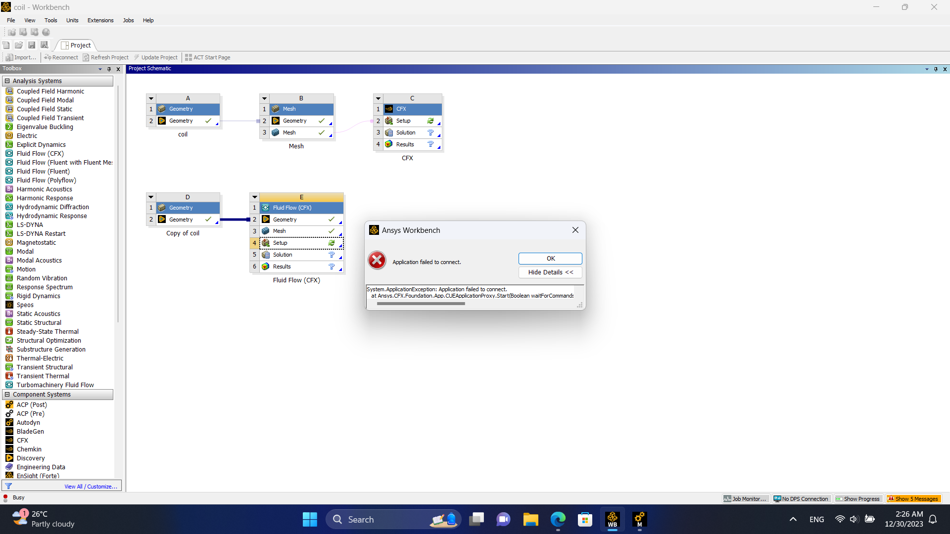 --- Ansys.Core.Commands.CommandFailedException: Application failed to connect.